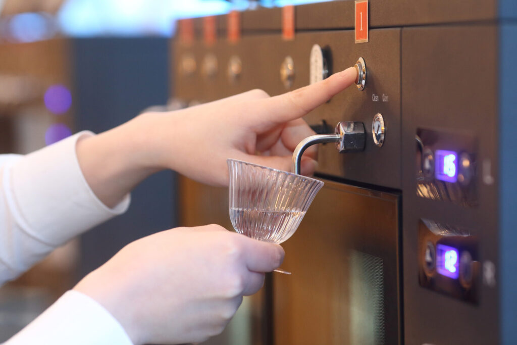 フロントで専用コインをご購入いただき、コイン式サーバーからお好きなお酒を注いで楽しむスタイルです。