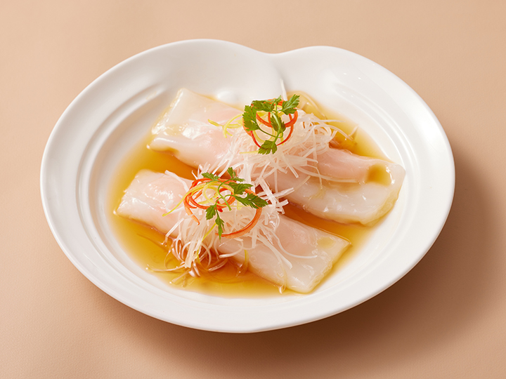 - 海老の米粉クレープ包み 葱生姜風味 ソースシーヤウ