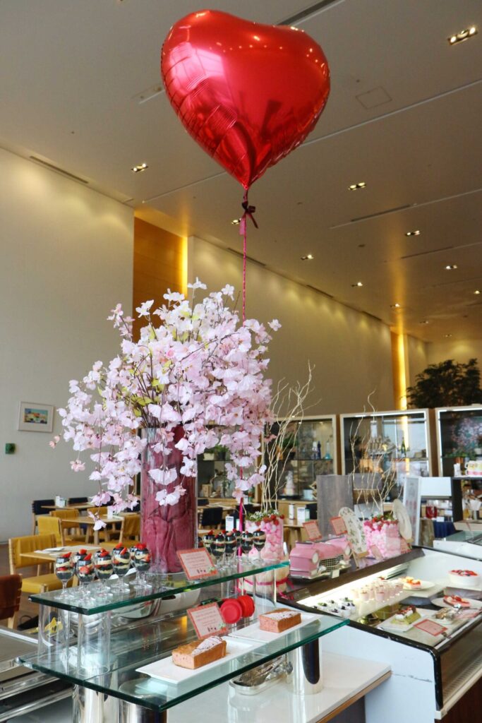 ショーケースに並ぶ春のスイーツ