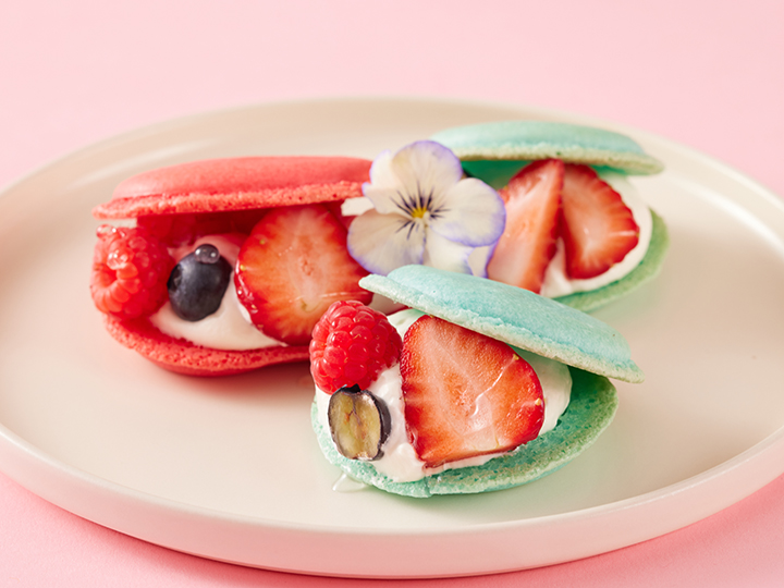 甘酸っぱい苺とクリームをサンドした、見た目にも華やかな一品です。