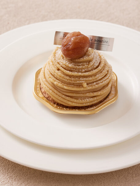 和栗を使用したクリームの下には、軽やかなメレンゲ生地〈シュクセ〉を土台に。外はさくっと、中はほろりとした食感が、やさしい栗の風味をいっそう引き立てます。パティシエが一つひとつ丁寧に仕上げた、上品で奥行きのある味わい。
