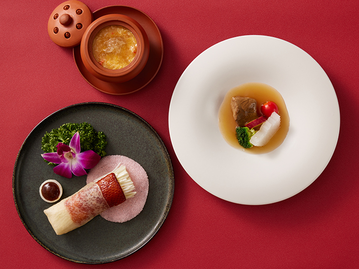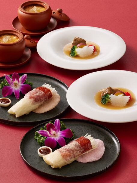 上海蟹味噌のふかひれスープや北京ダックなど、贅沢な逸品を組み合わせた特別コース。冬の新潟で味わう“美味と温もり”を堪能。