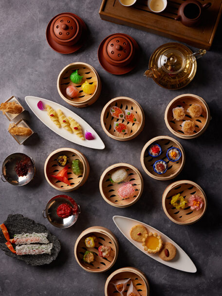 桃李で人気の焼売や餃子、小籠包などの点心をはじめ、季節の中国料理をすべて食べ放題でお楽しみいただけます。ワゴンでお席にお持ちする蒸したての点心に加え、上海式小籠包や海老蒸し餃子の食べ比べ、四川麻婆豆腐、豚バラ肉の紹興酒煮込みなど、オーダーをいただいてから仕上げる出来立ての一皿をご用意しました。紅鮭入り炒飯や中華粥など、幅広い世代で楽しめるメニューも揃え、デザートには苺プリンや北京式ミルクプリンなどをご提供。