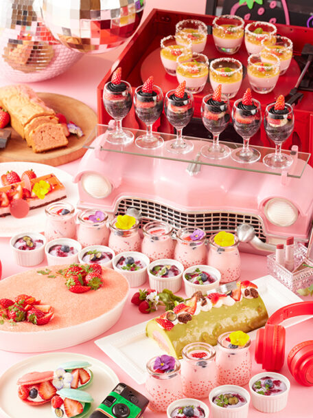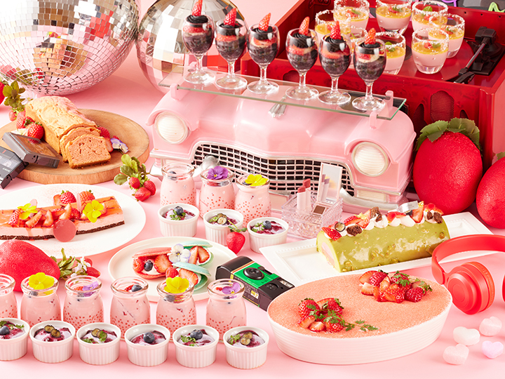 毎年ご好評をいただいている「ストロベリー&ベリースイーツ ランチブッフェ」。苺やベリーを使ったスイーツを中心に、パスタや肉・魚料理などの温製メニュー、サラダ、軽食まで揃えたランチブッフェです。