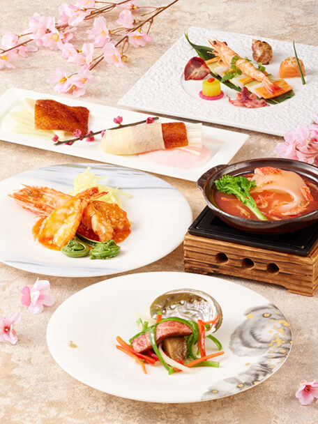 桜海老と気仙沼産ふかひれ姿煮、北京ダック、黒毛和牛など、春の恵みを重ねた広東料理コース。選ぶ楽しみも備えた、季節限定の特別コースです。