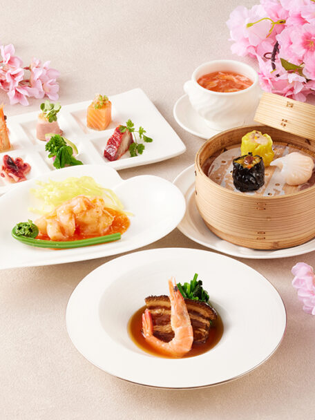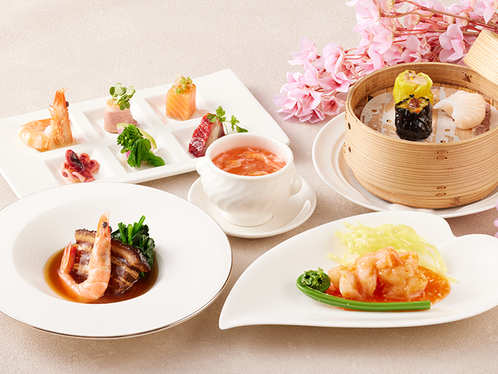 桜海老と蟹肉入りふかひれスープや大海老のチリソース煮など、春の味わいを華やかに。上質な広東料理を気軽に楽しめるシーズナルコースです。