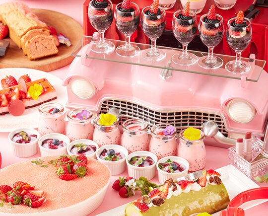 毎年ご好評をいただいている「ストロベリー&ベリースイーツ ランチブッフェ」。苺やベリーを使ったスイーツを中心に、パスタや肉・魚料理などの温製メニュー、サラダ、軽食まで揃えたランチブッフェです。